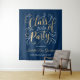 Un élégant fond de photo pour fête de remise des diplômes avec un design élégant en faux or avec des accents de défilement jolis. Inclut un texte élégant personnalisé en or et blanc qui peut être personnalisé avec le nom du diplômé et un message de Félicitations. Notez que le fond bleu nuit peut être personnalisé.