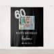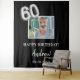 Une tapisserie pour une fête des 60 ans. Fond noir, texte blanc. Personnalisez et ajoutez une photo de haute qualité, du texte, un nom et une date. Le numéro 60 est écrit avec une police de style ballon argenté faux. Peut être utilisé comme décoration murale pour la fête ou comme toile de fond pour un photomaton.