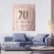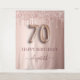 Une tapisserie pour une fête de 70 ans girly et glamour. Un fond dégradé rose et or rose avec des gouttes de fausse brillance de couleur or rose élégantes, aspect peinture qui coule. Avec le texte : Joyeux Anniversaire. Personnalisez et ajoutez un nom. Le nom est écrit en or rose foncé avec un style d'écriture manuscrite moderne avec des fioritures. Le numéro 70 est écrit avec une police de caractères à l'aspect ballon tendance. Pour garder les fioritures, supprimez uniquement le nom d'exemple, laissez les espaces ou les émojis devant et derrière le nom. Peut être utilisé comme bannière de bienvenue, décoration murale pour la fête ou comme toile de fond pour un photomaton.