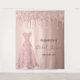Elégant, classique, glamour et girly style la bannière de douche nuptiale, fond photo. Une robe en or rose avec fausse parties scintillant en or rose goutte-à-goutte, la peinture goutte à goutte. arrière - plan d'or rose faux métallique. Avec le texte : Douche nuptiale écrite avec un rose moderne couleur foncé à la main écriture style. Modèle pour le nom de la mariée et une date. Peut être utilisé comme décor mural pour la douche nuptiale ou comme fond photo.