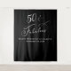 Tapisserie élégante et personnalisée pour les 50 ans avec fond noir pour photobooth avec "50 ans et fabuleux" écrit en élégante écriture blanche. Personnalisez avec son nom et sa date d'anniversaire