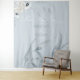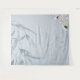 Meilleur Jour de Tous les Temps Accessoire de Photo de Mariage - à utiliser derrière la mariée et le marié pendant qu'ils prononcent leurs vœux, comme toile de fond pour votre table de livre d'or ou derrière la table des mariés. Un coin de fleurs de pivoines couleur ivoire crème aquarelle et d'anémones floral bleu poussiéreux très pâle et de feuillage avec une branche délicate de feuilles aquarelles bleues poussiéreuses en travers du bas de cette tapisserie blanche. C'est l'un des quatre styles de ce design.