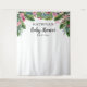 Magnifique conception de décoration de Baby Shower fille avec des fleurs d'hibiscus rose aquarelle, une verdure tropicale luxuriante et un ruban rose à plusieurs boucles.