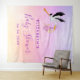 Pour une baby shower élégante et féminine. Un fond dégradé violet romantique, rose et or rose, lettres violettes. Avec une cigogne volante mignonne tenant un bébé fille. Personnalisez et ajoutez le nom de la future maman. Le texte Baby Shower est écrit avec un style de lettrage à main moderne et tendance. Simple, minimaliste et élégant ! Peut être utilisé comme bannière de bienvenue, décoration murale de fête ou comme toile de fond pour photobooth.