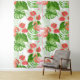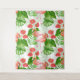 Aquarelle design motif avec des fleurs et des oiseaux flamands, la monstère et les feuilles de palmiers.