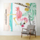Ajoutez une touche de gaieté et de plage à votre décor de fête d'anniversaire avec cette tapisserie tropicale ! Doté d'un joli flamant rose sur la plage, il sirote un cocktail tropical à côté d'un palmier avec une légende "fêtons" dans un script d'écriture moderne et décontractée. Cela fait également un cadre photo amusant pour vous et vos invités. Art par KL Stock.