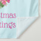 Tapisserie avec flamand de Noël à thème tropical portant un chapeau de santa rose. Sous ses pieds se trouve un bouquet de sucre de canne avec de jolies fleurs tropicales et des baies roses. Un bourgeon de saint sur sa poitrine.