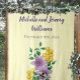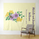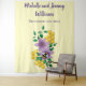 Jolie petite abeille dans une fleur couleur lavande avec un nid d'abeille et un fond jaune.