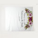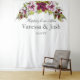 Cette création a été conçue pour le couple élégant et sophistiqué qui aime les détails audacieux et raffinés. Les fleurs dans cette création sont luxueuses. À la base de l'arrangement floral se trouvent des feuilles de eucalyptus et de fougère vertes vibrantes qui soutiennent de belles grandes fleurs et des baies délicatement peintes dans une riche couleur boysenberry, associées à des magnolias blancs ombrés de la même couleur de baie. Ce magnifique fond de mur photo présente ces belles compositions florales arquées au sommet, nichant la typographie personnalisable "Happily Ever After", les noms des jeunes mariés et la date de l'événement. La police de caractères calligraphique anglaise lui donne la touche finale d'élégance.