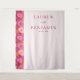 Ce fond de mariage élégant présente un design minimaliste avec une disposition verticale, divisé en deux sections. Le côté gauche présente un motif floral vibrant dans des nuances de rose et de corail, tandis que le côté droit est d'un blanc immaculé, créant un contraste saisissant. Centré sur le fond blanc, un texte sophistiqué en police serif et cursive ajoute une touche de romance à l'esthétique moderne. Parfait pour célébrer l'amour, ce fond combine des motifs inspirés de la nature avec une typographie chic, créant une atmosphère joyeuse et sophistiquée pour votre jour spécial.