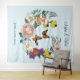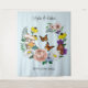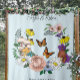 Un arrière - plan bleu clair avec des fleurs sauvages, des champignons, des marguerites blanches et des papillons monarques. Parfait pour les couples qui aiment le plein air et le charme rustique.