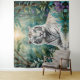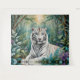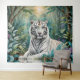 Tigre blanc aux yeux bleus et rayures dorées dans une cascade de jungle de forêt tropicale verte bleue art AI créé par minx267