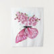 Flower arrangement of pink butterfly with rose Japanese cherry blossoms on white background.