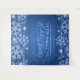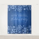 Fond élégant pour fête de Noël / de fin d'année en entreprise "Dessert Table Backdrop" bleu glamour avec flocons de neige scintillants et guirlandes lumineuses.