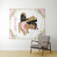 Fond de baby shower afro-américain avec une adorable petite fille afro-américaine avec un beau tutu rose et des perles sur une belle paire de chaussures à talons hauts dorées et un fond élégant rose et or. Ce fond de baby shower adorable est facilement personnalisable avec le texte de votre choix. Vous pouvez également changer la couleur de fond de cette bannière de baby shower ethnique.
