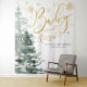 Décorez votre photobooth de baby shower ou votre zone de fête avec ce fond de baby shower moderne Bébé il fait froid dehors. Le design présente une police de caractères à calligraphie moderne, des flocons de neige et des arbres de forêt à l'aquarelle. PAS DE FEUILLE D'OR