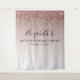 Tapisserie chic personnalisée de fond de cabine photo pour votre fête d'anniversaire 50 ans avec fausse brillance rose gold qui coule sur un fond ombré rose gold et votre prénom dans un script élégant. Vous pouvez modifier l'année d'anniversaire et ajouter la date ou laisser vide.