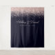 Fond de cabine photo de mariage bleu marine confettis Rose Gold. De beaux confettis rose gold vintage glam simples sur un fond bleu marine. Ce design moderne personnalisé peut être facilement personnalisé avec vos propres détails.