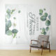 Tapisserie de fond de cabine photo de Baby Shower sur le thème Eucalyptus. Décoration murale de fête idéale et bannière pour une Baby Shower sur le thème botanique moderne et tendance. Avec feuillage d'eucalyptus et fond aquarelle rose. Modifiez facilement les détails en cliquant sur le bouton "Personnaliser" ci-dessus.