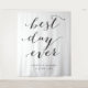 Un magnifique élément de décoration idéal comme toile de fond pour votre cérémonie, présentant la phrase "best day ever" dans une police de style calligraphie moderne noire. Personnalisez avec vos noms et date de mariage. Utilisez-le comme décoration dans votre maison après votre mariage.