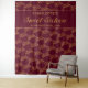Fond de décor pour une fête d'anniversaire Sweet 16 en bordeaux et or - parfait pour un photomaton, un panneau de bienvenue ou simplement comme un grand élément de décoration de fête pour aider à définir le thème. Le design présente un motif en diagonale, répétitif et en mosaïque de "Sweet Sixteen", écrit en calligraphie tourbillonnante et en typographie élégante. Le modèle est prêt à être personnalisé avec le nom de la jeune fille et la date de l'événement.
