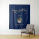Cette tapisserie moderne est parfaite pour une fête d'anniversaire au thème de couleur bleu marine et or chic. Vos invités prendront plaisir à prendre une photo avec ce fond de décor de fête sophistiqué et se souviendront de votre jour spécial. Le design présente l'inscription "Joyeux Anniversaire" en lettrage pinceau doré et un texte personnalisé. Vous pouvez personnaliser le nom, l'événement et la date en bas de la tapisserie. Merci !