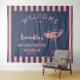 Tapisserie personnalisée pour enterrement de vie de jeune fille rétro en rose et bleu avec un verre à cocktail, idéale comme fond pour photos de fête d'enterrement de vie de jeune fille. Célébrez votre douche de mariage avec style avec le thème parfait de la fête cocktail en rose gras, le thème idéal pour la mariée nostalgique vintage des années 70 et ses demoiselles d'honneur.