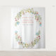Un joli fond de décor pour photo de douche nuptiale champêtre avec des fleurs sauvages. Ce design présente un cadre ovale entourant des fleurs sauvages aquarelles dans des tons bleus, coraux et jaunes vibrants, et des feuilles vertes. Personnalisez avec le nom de la future mariée et la date de la douche nuptiale.