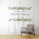 Avec ses feuilles délicates peintes à l'aquarelle et son crucifix doré élégant, ce chic fond de décor pour photo de première communion peut être personnalisé avec les informations de votre événement spécial. Conçu par Thisisnotme©