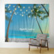 Cette tapisserie de mariage de destination de plage tropicale amusante et personnalisée peut être utilisée comme toile de fond pour un photomaton et présente une plage tropicale, un océan bleu turquoise, des bateaux, des palmiers élégants, des guirlandes lumineuses, ainsi que vos propres noms et date de mariage dans un script tendance classique et écrit à la main. Cette toile de fond est parfaite pour votre douche de mariée sur la plage tropicale, la douche du couple, le dîner de répétition ou la réception de mariage ! Facile à personnaliser avec votre propre nom et date de mariage. Choisissez parmi plusieurs couleurs différentes de sets de sacs à haricots pour chaque planche. Veuillez me contacter pour toute personnalisation de conception supplémentaire dont vous pourriez avoir besoin pour votre beau mariage. Photographie de la plage et des palmiers prise sur la Grande Île d'Hawaï et design © par TK G