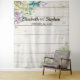 Modèles de Fond pour Photobooth de mariage - Élégantes plantes succulentes à l'aquarelle sur fond en bois rustique blanc.
