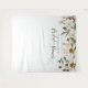Le fond de décor pour photos de fête prénuptiale élégante Magnolia est parfait pour une fête de mariage moderne et chic. Le design floral doux présente des pivoines roses aquarelles, de magnifiques fleurs de magnolia blanches et du coton avec des feuilles dorées et vertes dans un arrangement luxueux. Personnalisez-le avec le nom de la future mariée.