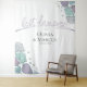 Des coquillages lilas pâle et bleus poussiéreux ornent les coins de ce fond amusant pour votre photomaton de mariage - (ou comme fond coordonné pour votre livre d'or ou table de mariage) - ' Meilleur jour jamais ! ' écrit dans une calligraphie manuscrite moderne en détresse avec les noms des mariés et la date du mariage dans un texte de style contemporain moderne. Conception créée pour le BarefootBride™ par © WhimsicalArtwork™ - Cela fait partie d'une suite complète de papeterie de mariage avec de la papeterie de mariage, de baby shower et d'autres événements assortis.