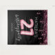 Fond de décor pour photobooth de fête d'anniversaire 21 ans pour fille avec un fond noir tendance, paillettes roses et confettis, 21 ballons roses en hélium, le nom de la fêtée et la date.