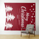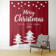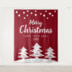 Fond de décoration élégant pour photo de fête de Noël avec chute de neige. Idéal pour réaliser des photos de groupe professionnelles et des selfies avec la famille, les amis ou les invités. Tapisserie décorative murale personnalisée disponible en petites et grandes tailles extra larges. Décoration de Noël personnalisée pour une réunion amusante, une réunion, une célébration, etc. Typographie de script élégant avec neige et arbres de Noël. Fond rouge ou couleur personnalisée.