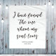 Fond de citation de mariage en blanc avec le texte noir lisant "J'ai trouvé celui que mon âme aime". Personnalisez-le avec les noms des mariés et la date de la fête. Décoration élégante de réception ou de cérémonie.