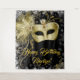Fond de fête d'anniversaire masqué avec un beau masque de mascarade doré sur un fond bokeh noir, or et blanc. Cette belle bannière de fond de fête masquée noire et or est facilement personnalisable avec le texte de votre choix. Vous pouvez changer la couleur du fond et du texte.