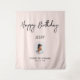 Cette tapisserie moderne est parfaite pour une fête d'anniversaire au thème de couleur noir et rose chic. Vos invités apprécieront prendre une photo avec ce fond de fête sophistiqué et se souviendront de votre journée spéciale. Le design présente l'inscription "Joyeux Anniversaire" en écriture brosse noire et texte personnalisé. Vous pouvez personnaliser le nom, l'événement et la date en bas de la tapisserie. Merci !