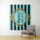 Tenture Fond de fête d'anniversaire rayé d'or Aqua Black