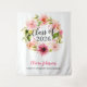 La conception du fond de fête de remise de diplôme comprend une conception de couronne de fleurs de la promotion 2026 avec un beau feuillage peint à l'aquarelle verte et des fleurs printanières de dahlia et de rose pastel rose, blush et pêche. Le texte noir doux et rose vif peut être personnalisé avec le nom de votre diplômé et de son école. Un fond parfait pour les photos de fête de remise de diplôme !