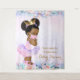 Fond pour baby shower Covid avec une adorable petite fille afro-américaine aux cheveux bouffants et à la frange craquante, portant un tutu rose et violet et un masque sur un joli fond floral rose et violet. Vous pouvez déplacer le bébé selon vos besoins et ajouter ou supprimer du texte selon vos besoins.
