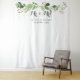 Un magnifique fond de photo ou accessoire de photobooth pour votre mariage, présentant un arrangement aquarelle de branches d'eucalyptus vertes, "M. & Mme" en police de caractères gris foncé, personnalisé avec vos noms et date de mariage.