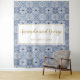 Fond de mariage élégant avec carreaux bleus, personnalisé avec vos noms et date.