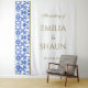 Ce fond de mariage élégant blanc et bleu italien est un excellent moyen de mettre en valeur votre décoration de mariage et offre également une opportunité de photo parfaite pour que les invités prennent des clichés mémorables de votre jour spécial. Inspiré par des motifs vintage siciliens, ce design élégant a été dessiné à la main et est donc exclusif à notre magasin, vous permettant de marquer votre mariage de manière sophistiquée et élégante. Pour les articles correspondant à cette esthétique méditerranéenne intemporelle, consultez notre collection complète. Cette tapisserie est entièrement personnalisable, vous permettant d'y intégrer vos informations personnelles. Pour personnaliser, cliquez simplement sur "Personnaliser ce modèle" et commencez.