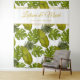 Ajoutez une touche d'élégance tropicale à votre grand jour avec ce fond de mariage vert et or Tropical Leaves. Doté d'un motif luxuriant de grandes feuilles tropicales vertes et d'un double cadre doré raffiné, ce fond présente une typographie dorée personnalisable avec les noms des mariés, la date du mariage et le lieu. Parfait pour les mariages à destination, les cérémonies sur la plage ou les réceptions sur une île, il crée un cadre époustouflant pour les photos, les tables des mariés ou les entrées de cérémonie.