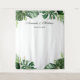 Tapisserie de photobooth de fond de mariage estival à feuilles de palmiers tropicaux.