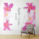 Ce fond de décor pour photomaton de mariage élégant sur la plage tropicale ou à Hawaï présente un motif floral de plumeria rose et blanc avec un effet de bavure de craie. C'est parfait pour le couple qui se marie à la plage, sous les tropiques, à Hawaï, en Floride, dans les Caraïbes, au Mexique, en Méditerranée, ou dans tout autre cadre de mariage tropical ou de destination. Photographie du bouquet et du design de fleurs de plumeria © par TK Goforth, tous droits réservés.