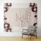 Tapisserie élégante pour la fête de mariage à utiliser comme décoration murale, panneau de bienvenue ou toile de fond pour photomaton, par exemple. Le design présente des roses rouges de Bourgogne et ivoire, de la verdure, des feuilles d'eucalyptus. La mention Fête de mariage est écrite à la main avec des fioritures en forme de cœur et le modèle est configuré pour que vous puissiez ajouter le nom de la future mariée. Veuillez parcourir ma boutique pour découvrir d'autres styles et accessoires assortis de la collection Royal Rose.