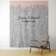 Fonds de mariage modernes avec fausses paillettes argentées et coulures en or rose.