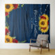 Fond DIY en bois floral bleu marine pour mariages, enterrements de vie de jeune fille, anniversaires et autres fêtes. Ce design rustique illustré à la main par Raphaela Wilson représente des tournesols aquarelles élégants et des roses rouges de Bourgogne disposés avec des guirlandes lumineuses et de la verdure sur un bois de grange vintage. Créez facilement vos propres fonds photographiques personnalisés en ajoutant un texte personnalisé, tel que le nom des mariés, ainsi que la date du mariage. Vous pouvez également transformer de manière créative ce fond de photographie de mariage pour l'utiliser pour la photographie et les portraits. En personnalisant davantage le design, vous pouvez supprimer ou repositionner toutes les fleurs rouges et jaunes, la verdure, les guirlandes lumineuses et le texte. Cachez même le bois pour choisir votre propre couleur de fond. Profitez-en ! Catégorie : tapisseries de fond de mariage rustique ; fond de tournesol ; et fonds de mur suspendus pour